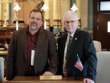 Sen. Darwin Booher, R-Evart, welcomed Dan Vogler (left) to the Michigan Capitol before Gov. Rick Snyder’s 2016 State of the State address. Vogler, owner of the Harrietta Hills Trout Farm in Harrietta, was Booher’s guest for the annual address Tuesday night.