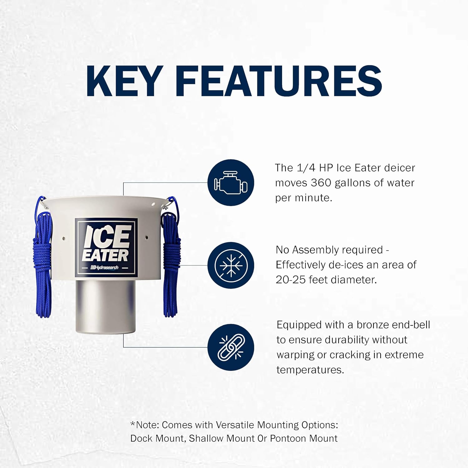 Ice Eater De-Icer 1/4 HP is designed to prevent ice from forming and to melt existing ice around boats, marinas, docks and piers.